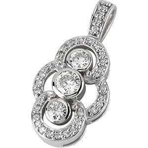 3-Stone Created Moissanite and Diamond Pendant | 3/8 Carat TW / 1/6 Carat TW. Matching Ring: 65729. Ref 83226.