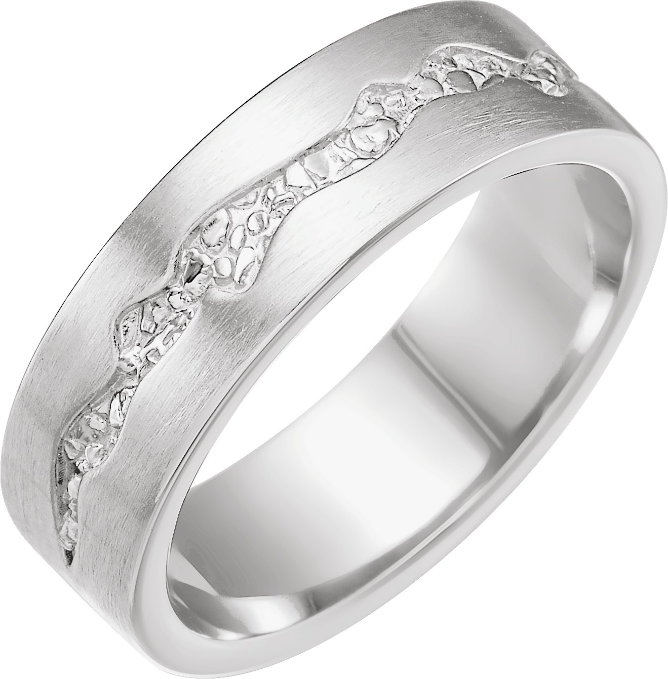 6 mm Nugget Pattern Band with Satin Finish. This Nugget Pattern Band won 2nd place in the 2022 JCK Jewelers' Choice Awards Men's Jewelry category. Available also in 14K X1 White Gold.