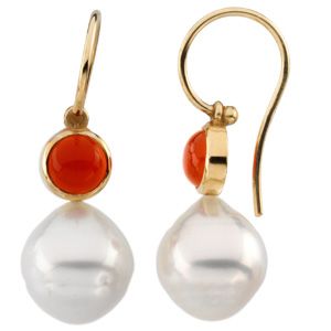 6mm Carnelian & 11mm South Sea Cultured Pearl Earrings