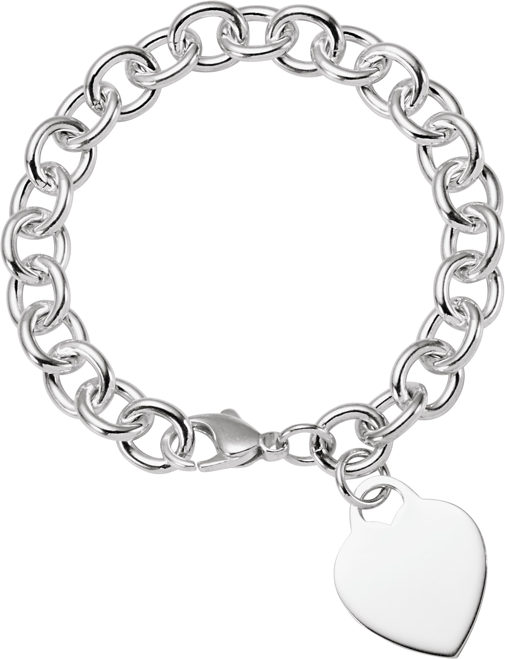 9.75mm Sterling Silver Cable Bracelet with Heart Charm 7.5 inch Ref 571498