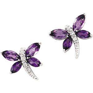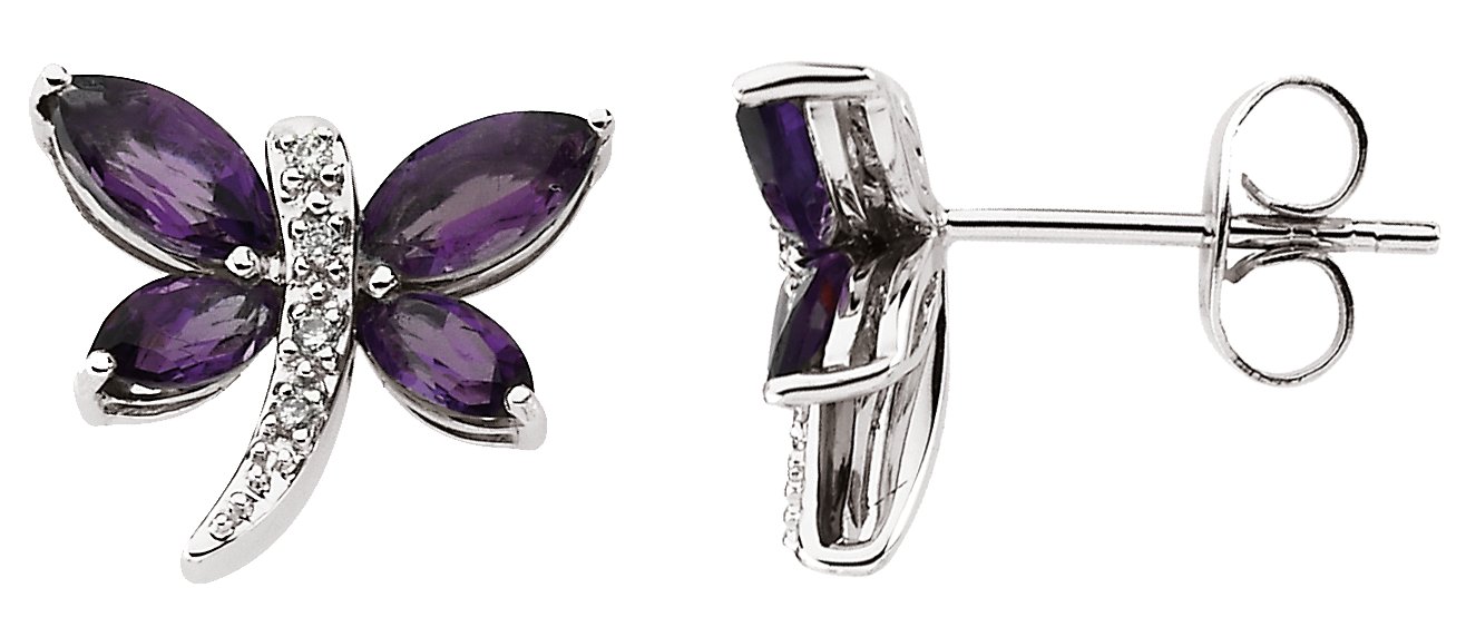 Genuine Amethyst & Diamond Earrings | 5 x 5.2 / 6 x 3 mm | .04 Carat TW. 14K White Gold.
