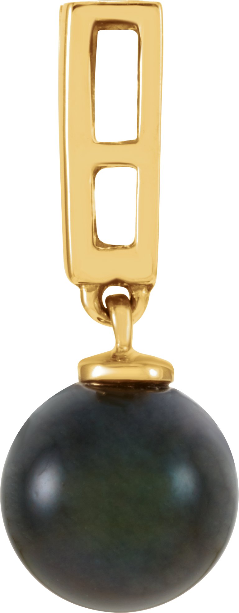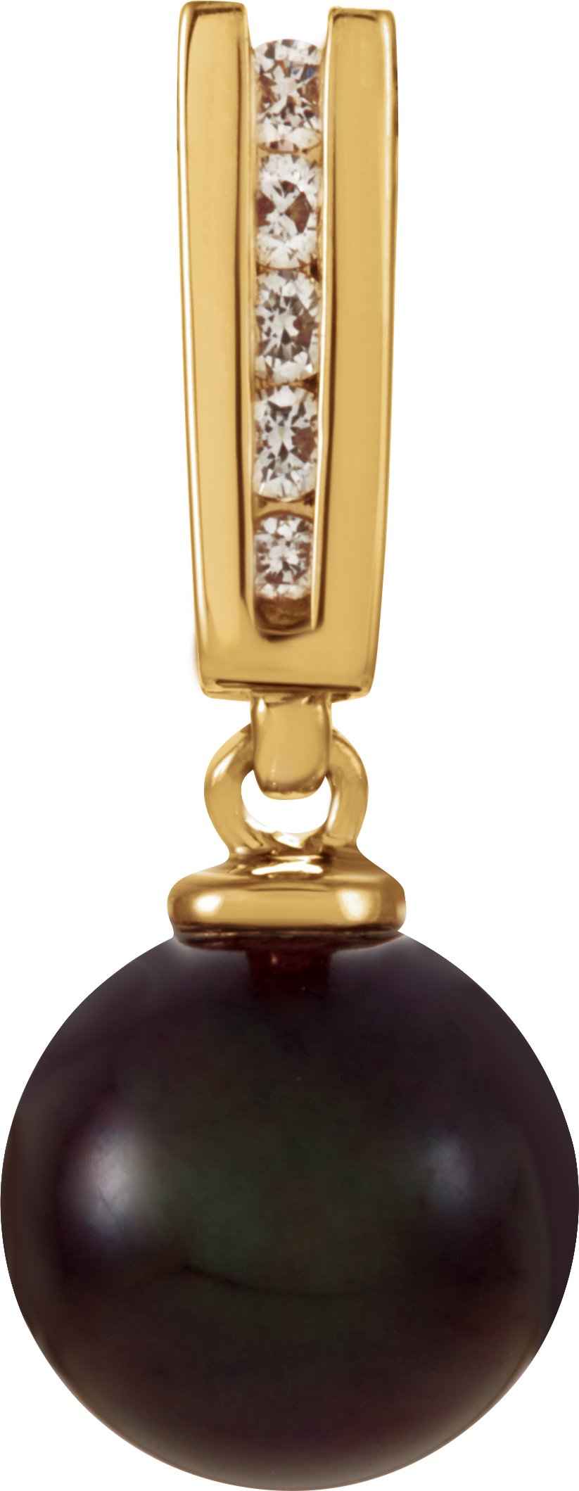 Black Cultured Pearl & Diamond Pendant | 7.5 mm Pearl | .07 Carat TW. 14K Yellow Gold.
