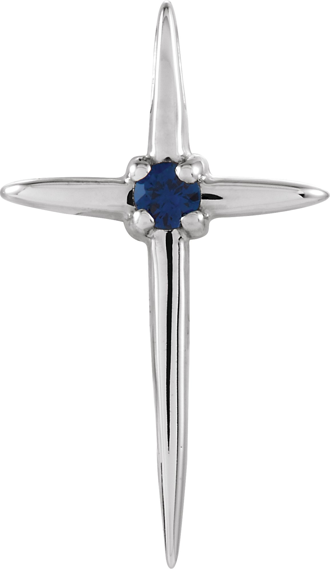 Blue Sapphire Cross 17.75 x 10mm. Hidden Bail. 14K Yellow or White Gold.