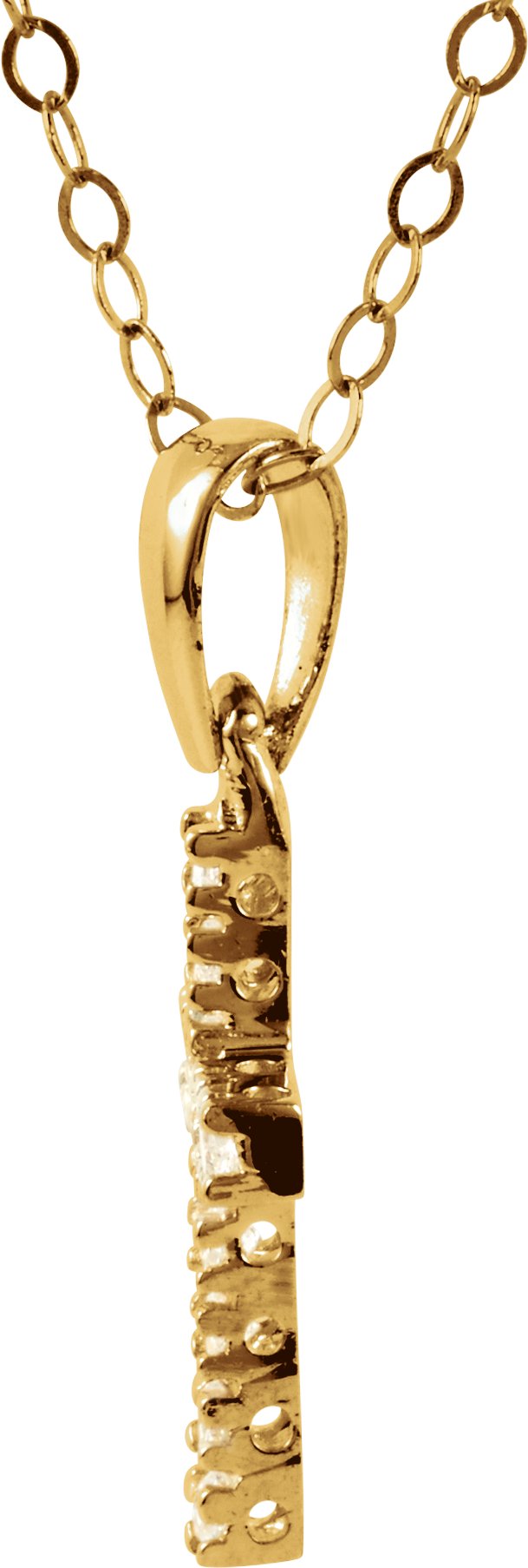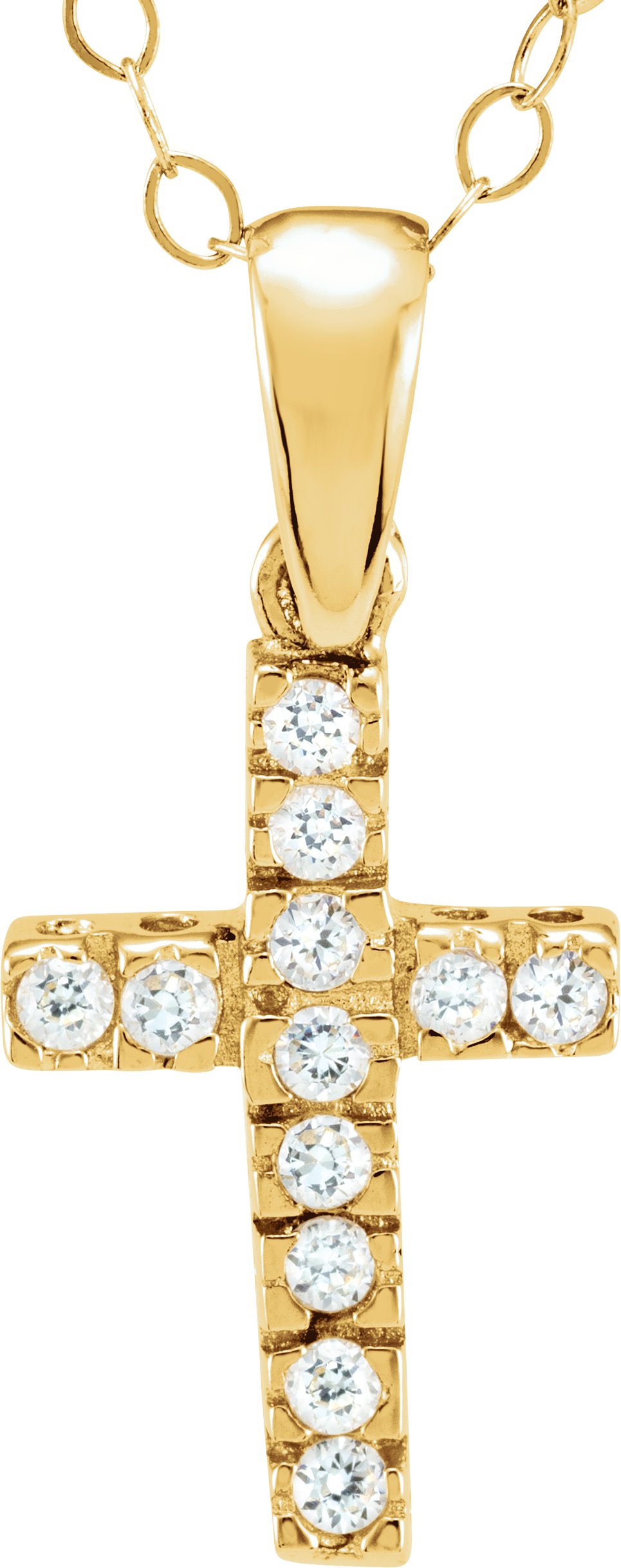 Children's CZ Cross Pendant | 12 x 8 mm. Available in 14K Yellow Gold. Sold with 15" cable chain.