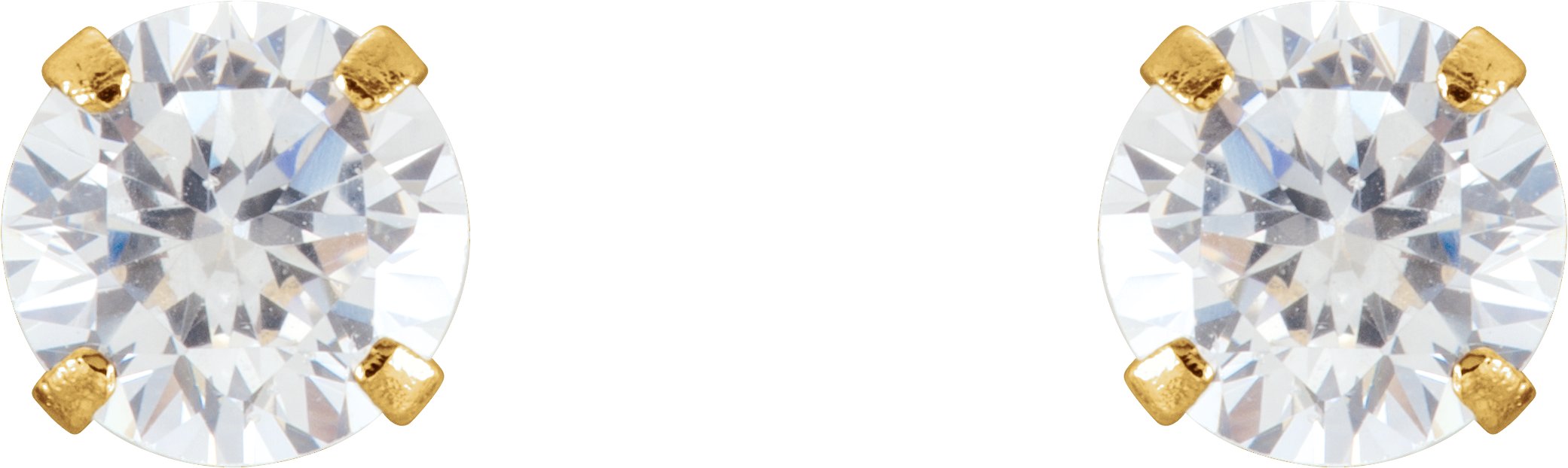 Children's Round CZ Earrings | 4.25 mm. Earring posts are threaded with push-on, twist-off backs.