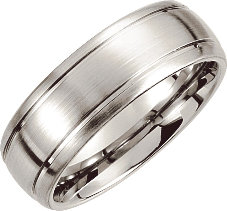 Cobalt 8 mm Slightly Domed Round Edge Band with Satin Finish and Grooves Size 9