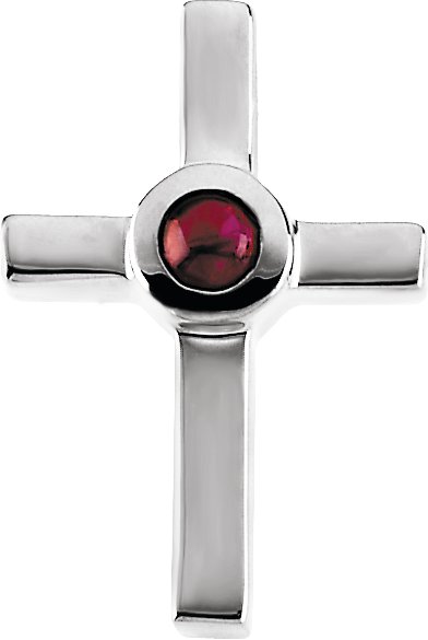 Color Fashion Cabochon Cross | 17.75 x 11.75 mm | Center stone 3 mm (.18CT TW) Genuine Cabochon Ruby