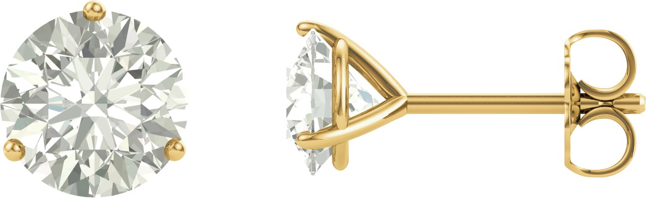 Created Moissanite 3-Prong Round Earrings | 4 mm | 1/2 Carat TW. Available in 14K Yellow or 14K White Gold.