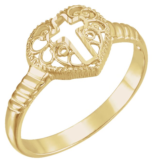 Cross Heart Ring. 14K Yellow Gold.