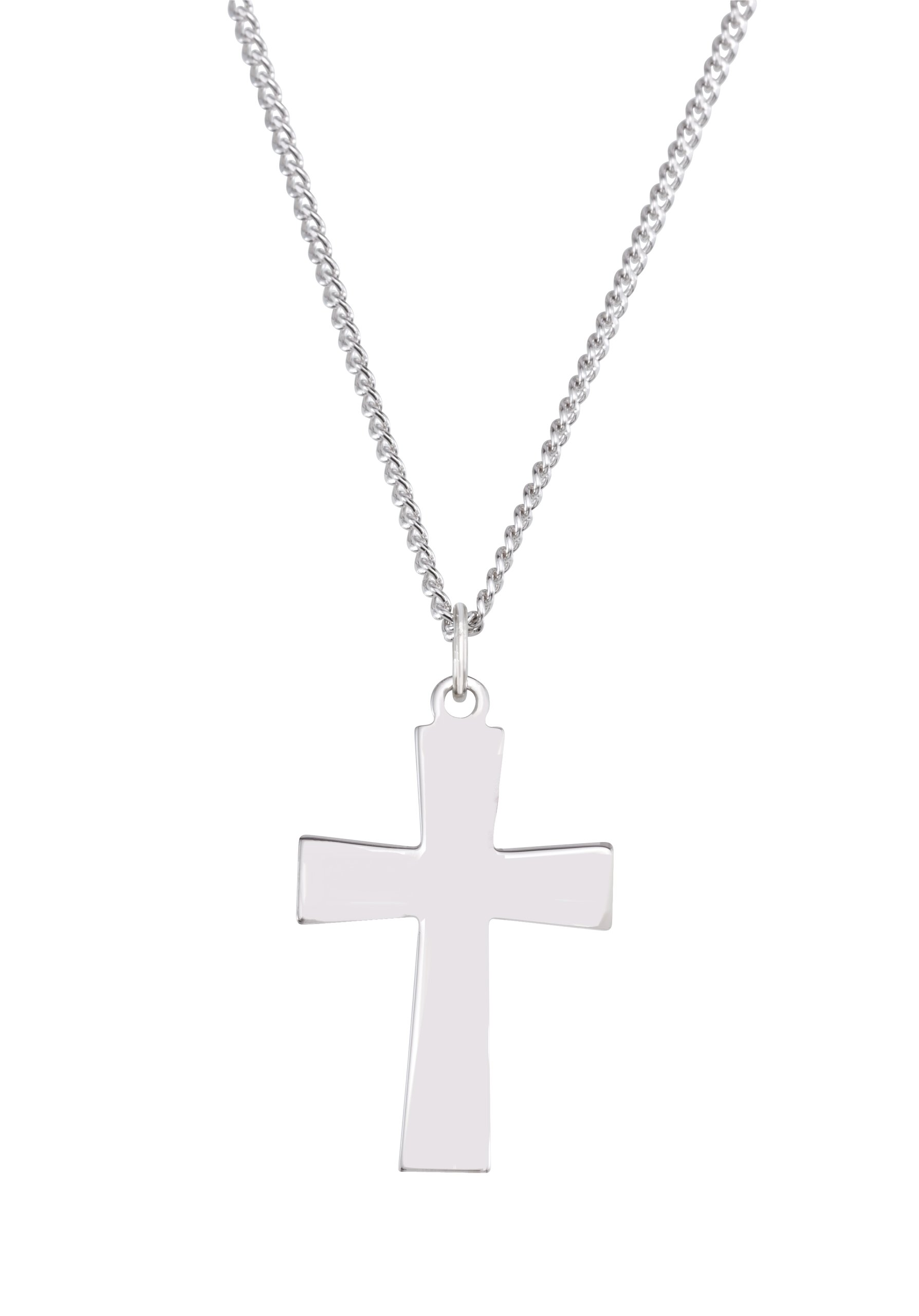 Cross Pendant | 30 x 20 mm. Sterling Silver. Comes with 24-inch chain.
