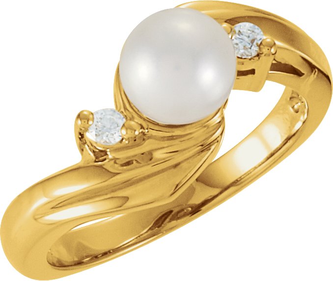Cultured Pearl 6.5 mm & Diamond Ring | 1/8 Carat TW. 14K Yellow Gold.