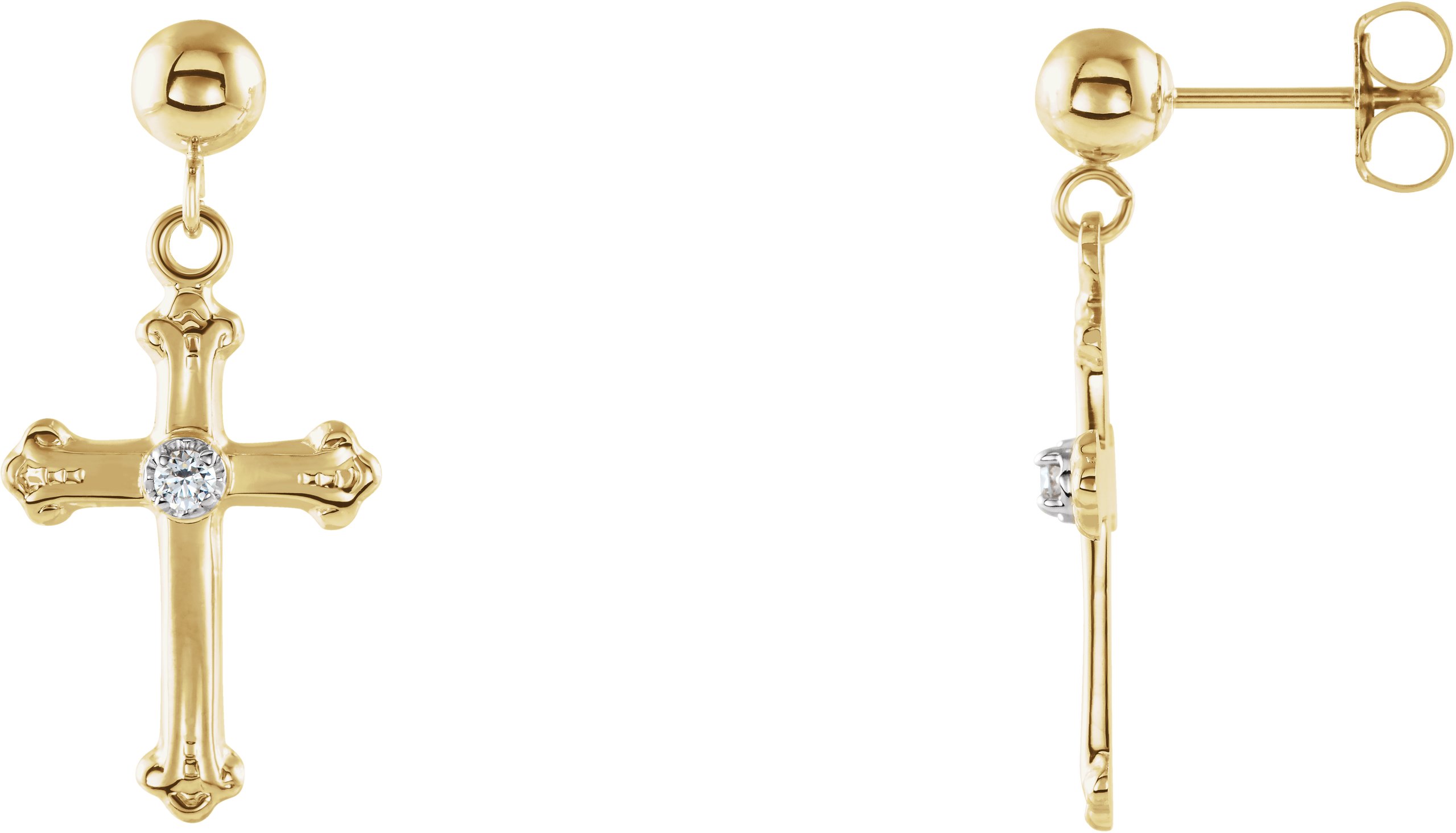 Diamond Cross Dangle Earrings | 15 x 10.5 mm