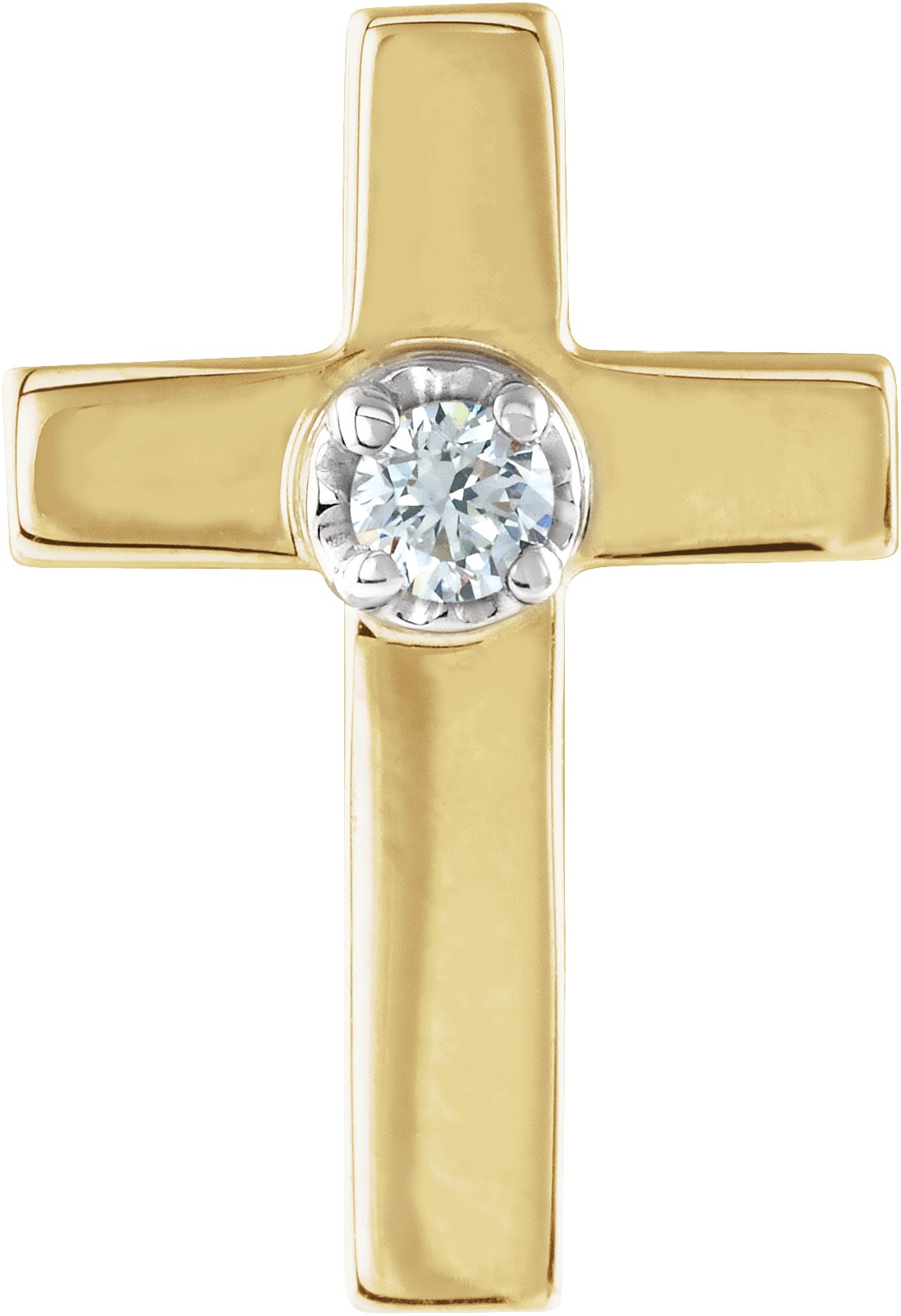 Diamond Cross Lapel Pin | 11 x 8 mm. Available in 14K Two Tone Yellow and White Gold or 14K White Gold.