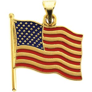 Enameled American Flag Pendant | 17.5 x 17 mm. Available in 14K Yellow or 14K White Gold.