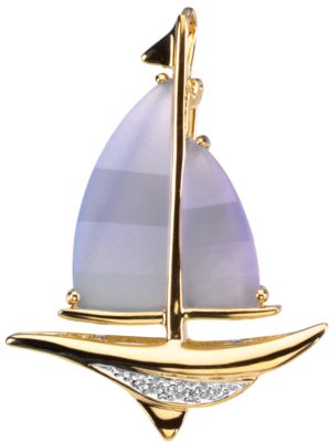 Genuine Blue Chalcedony and Diamond Sailboat Brooch or Pendant