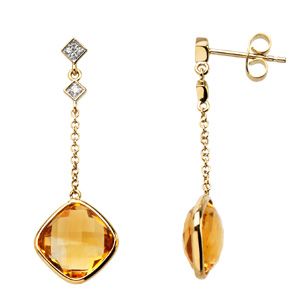 Genuine Checkerboard Citrine and Diamond Earrings Ref 66356