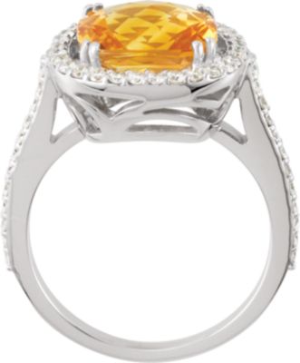 Genuine Citrine & Diamond Ring. 14K White Gold. 1/2 Carat TW.
