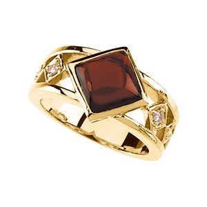 Set with: 1ea Genuine Garnet Mozambique - Antique Square; Dark Orange Red 08.00x08.00 MM AA Checkerboard 2ea Genuine Diamond G-H Round SI1 01.50 MM (01.41 - 01.55) Full Cut 2ea Genuine Diamond G-H Round SI1 02.00 MM (01.89 - 02.10) Full Cut