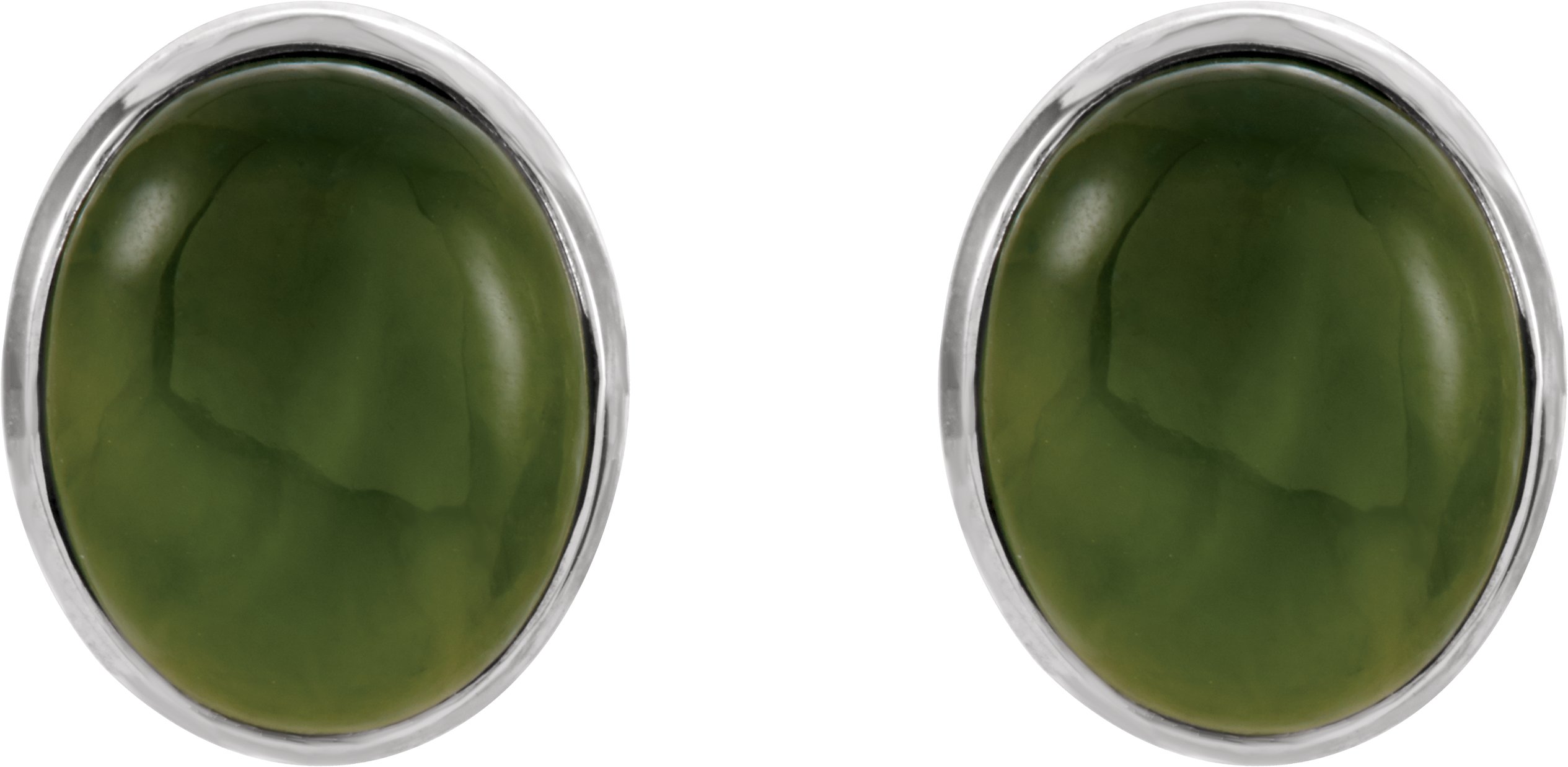 Genuine Nephrite Jade Cabochon Earrings | 10 x 8 mm. 14K White Gold. Ref 23489.