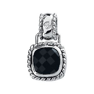 Genuine Onyx & Diamond Pendant | 8 mm | .03 Carat TW. 14K White Gold. Matching Ring: 65322; Matching Earrings: 65320.