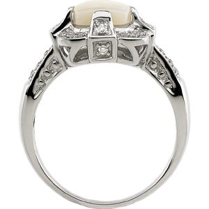 Genuine Opal Cabochon & Diamond Ring | 1/5 Carat TW