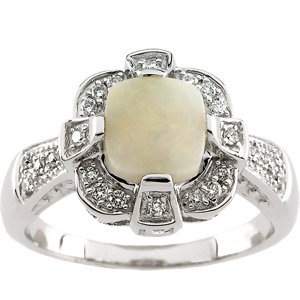 Genuine Opal Cabochon and Diamond Ring .2 CTW Ref 995374