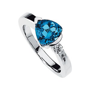 Set with: 1ea Genuine Topaz - Trillion; Swiss Blue 08.00 MM AA Faceted 1ea Genuine Diamond G-H Round SI1 03.00 MM (02.81 - 03.10) Full Cut