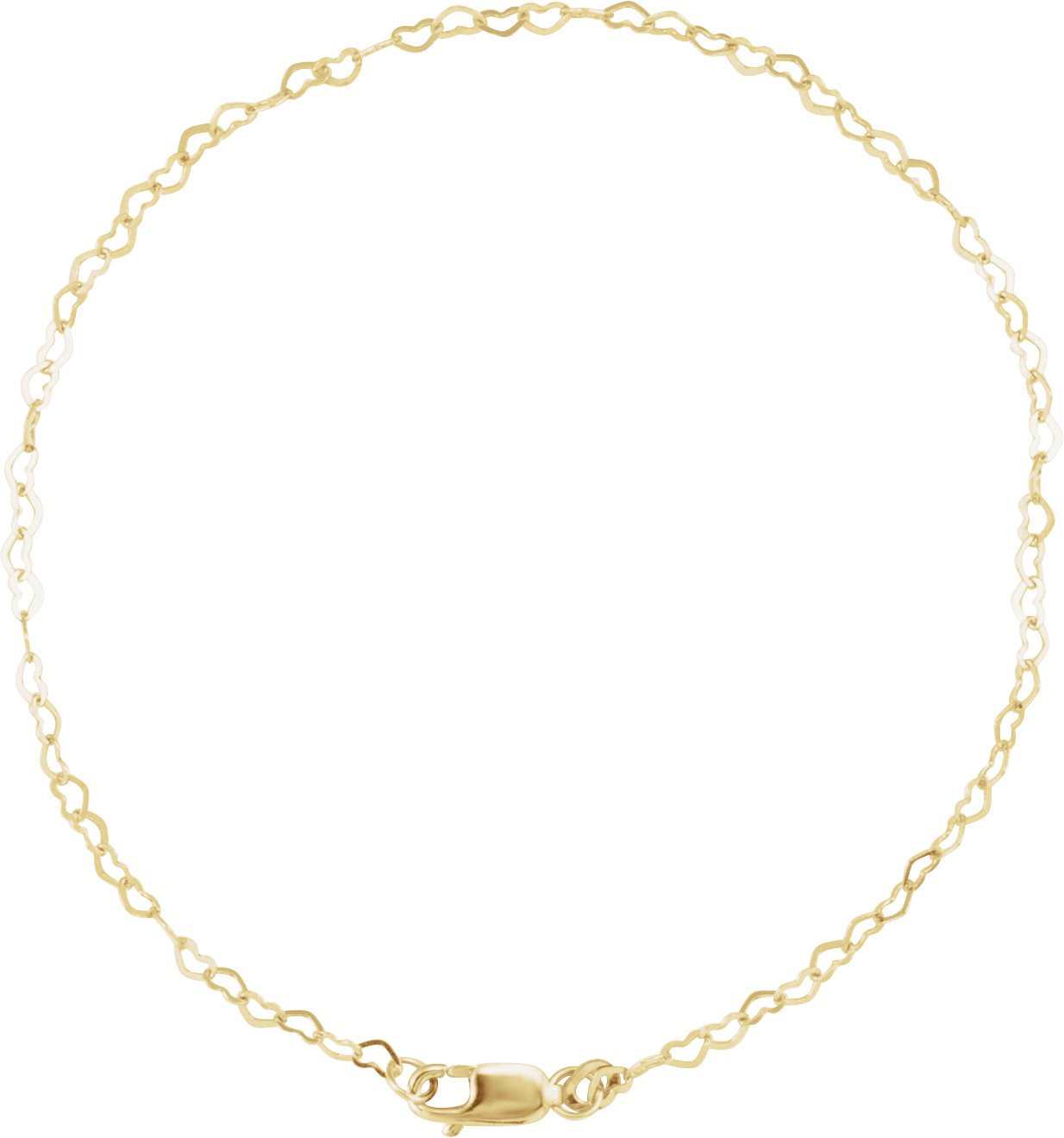 Gold 1.9 mm 7 inch Heart Chain Bracelet