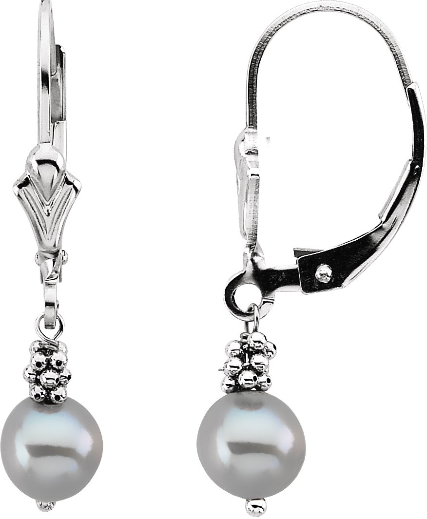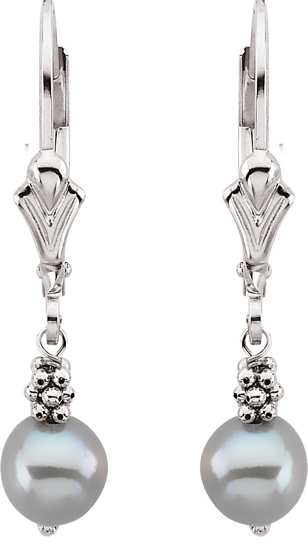 Gray Freshwater Cultured Pearl Earrings | 5.5 - 6 mm. 14K White Gold.
