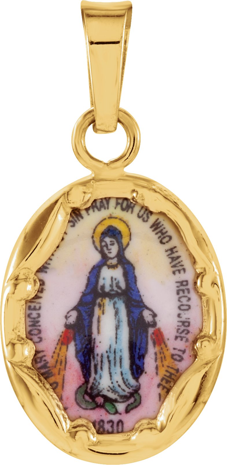 Hand-Painted Porcelain Miraculous Medal 13 x 10 mm