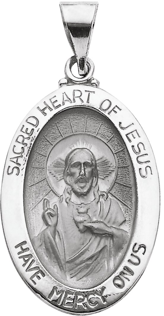 Hollow Oval Sacred Heart of Jesus Medal | 23.25 x 16 mm. Available in 14K Yellow or 14K White Gold.