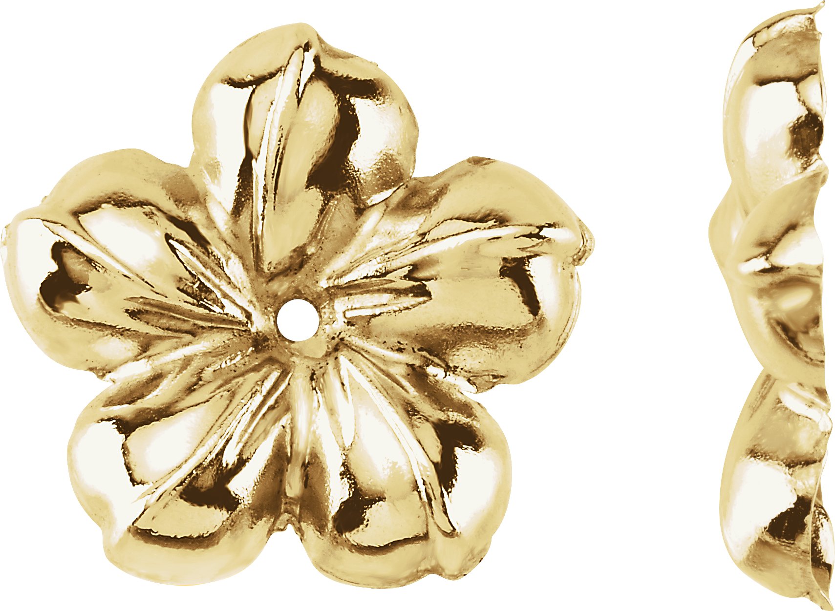 Large Gold Flower Earring Jackets | 13 mm Wide. 14K Yellow Gold. The quoted price is for a pair of earring jackets. Diamond studs sold separately.