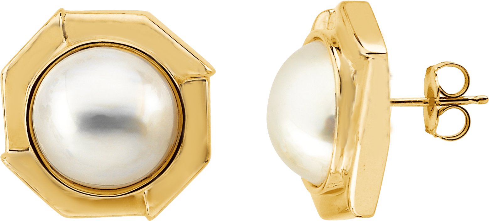 Mabe Cultured Pearl Earrings. Set with 2ea 12.00 MM Standard Mabe, Cultured Pearl - Round Mabe Mabe Assembled; WHITE
