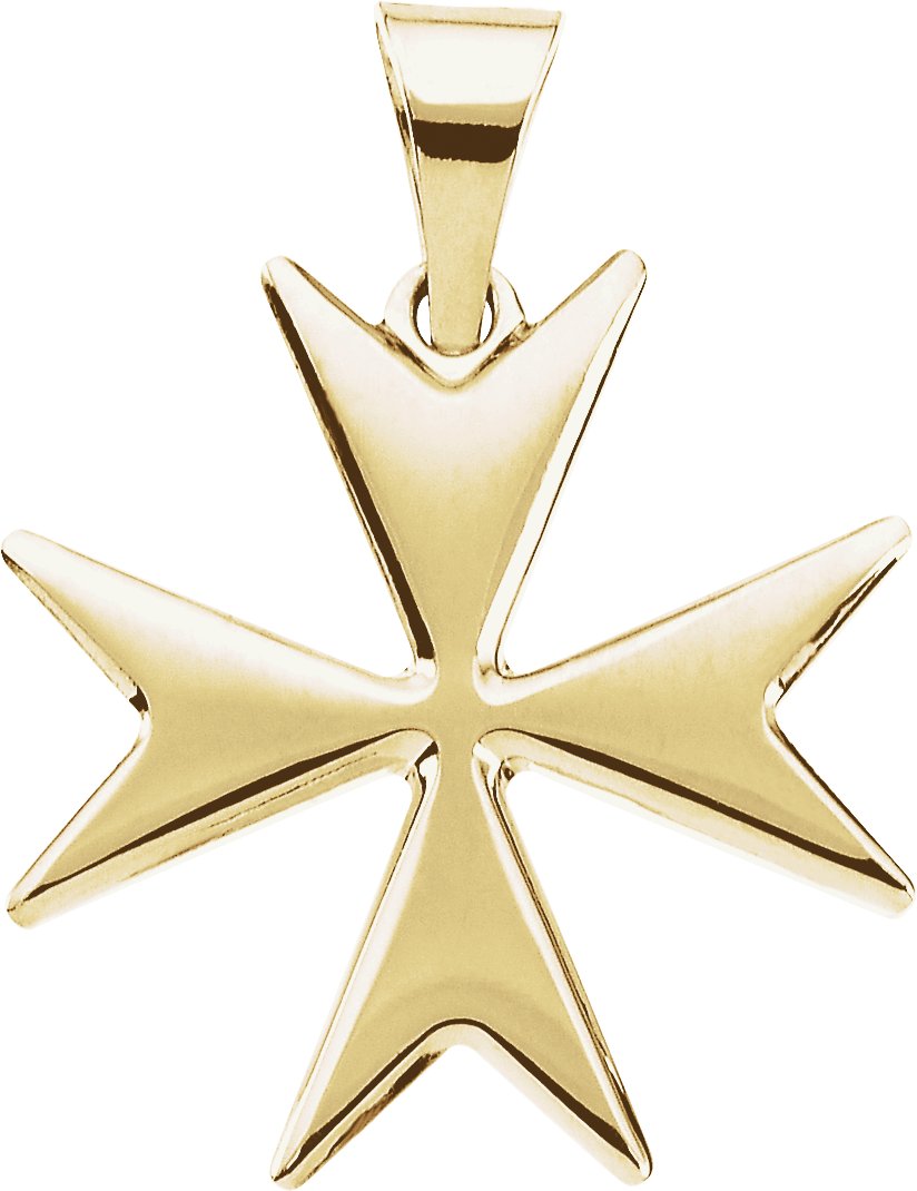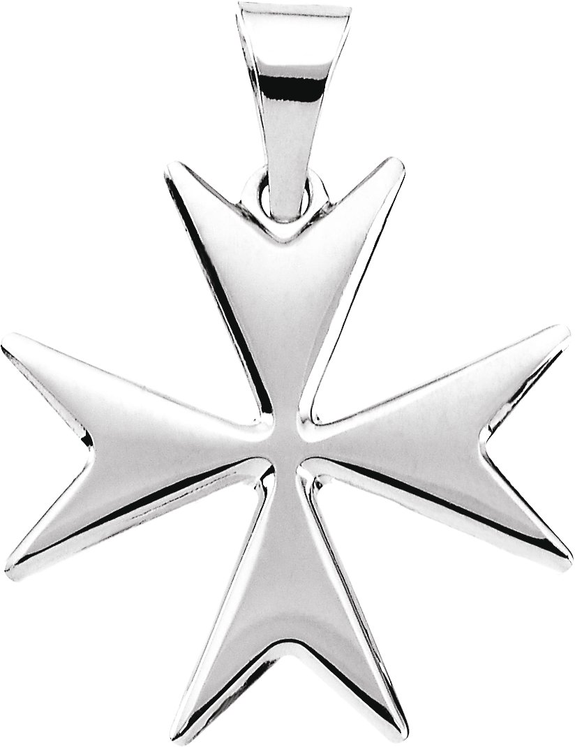 The Maltese Cross is the symbol of the Knights of Malta and Hospital of St. John of Jerusalem. Four spear heads converge at the center. The extensions represent the beatitudes.