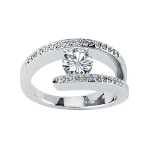 Created Moissanite And Diamond Ring | 6 mm | 3/4 Carat Center & 1/6 Carat TW. Ref 71270.
