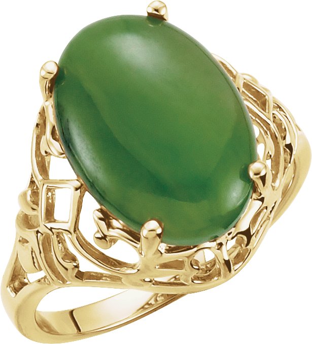 Description: Genuine Nephrite Jade Cabochon Ring