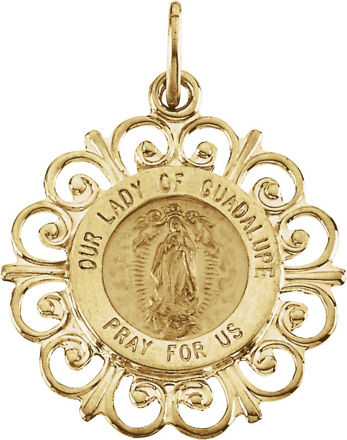 Our Lady of Guadalupe Medal | 20 x 18 mm. 14K Yellow Gold. Our Lady of Guadalupe is the patroness of the Americas and Mexico.
