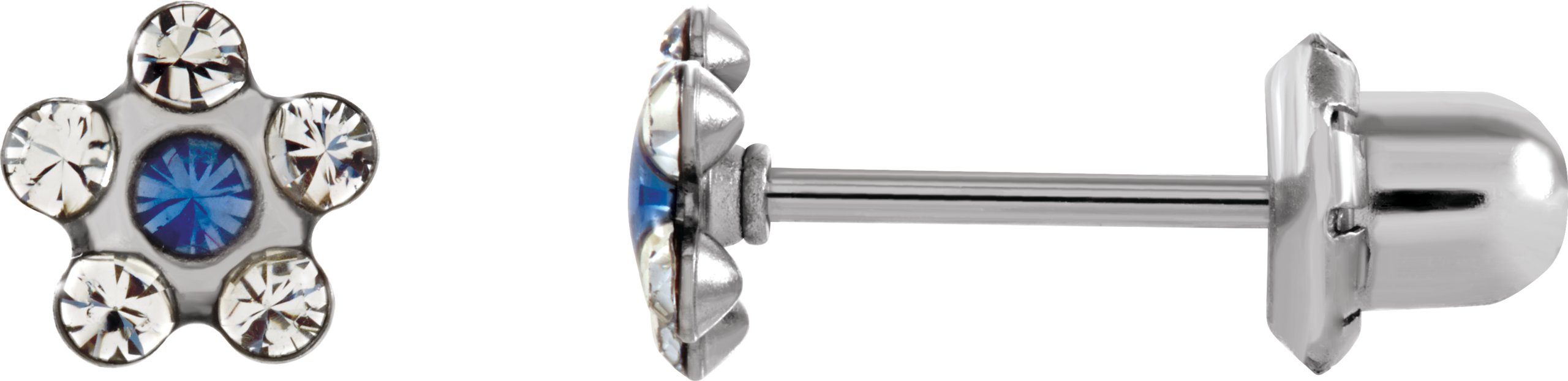 Palladium-Plated Blue & White Flower Piercing Earrings