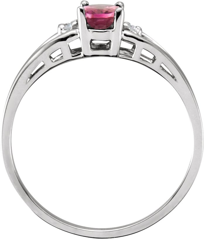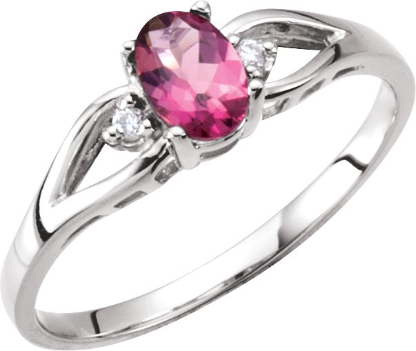Pink Tourmaline 6 x 4 mm & Diamond Ring | .02 Carat TW. 14K White Gold.