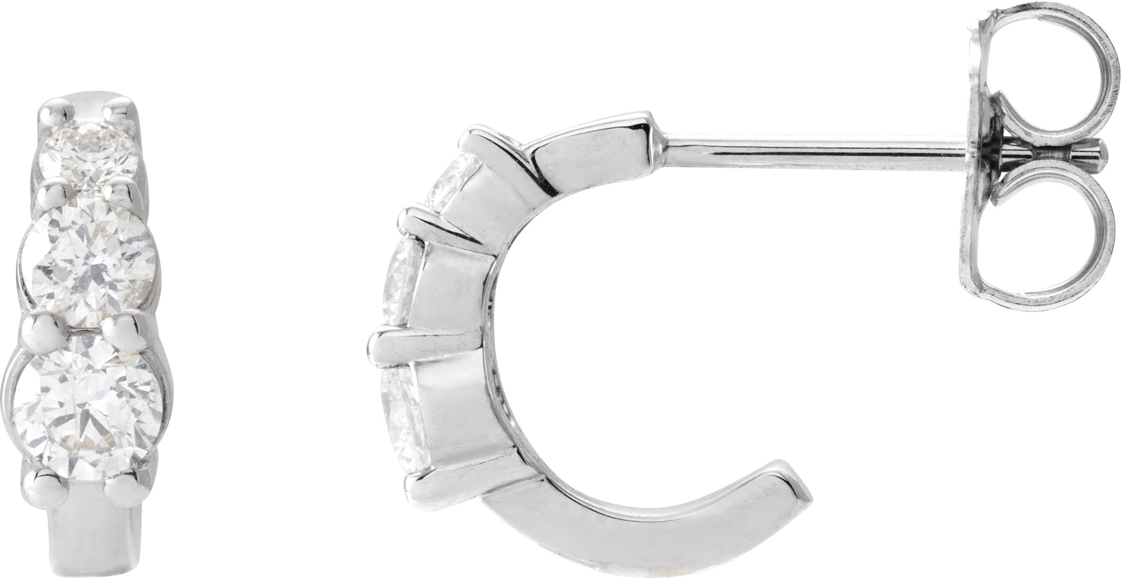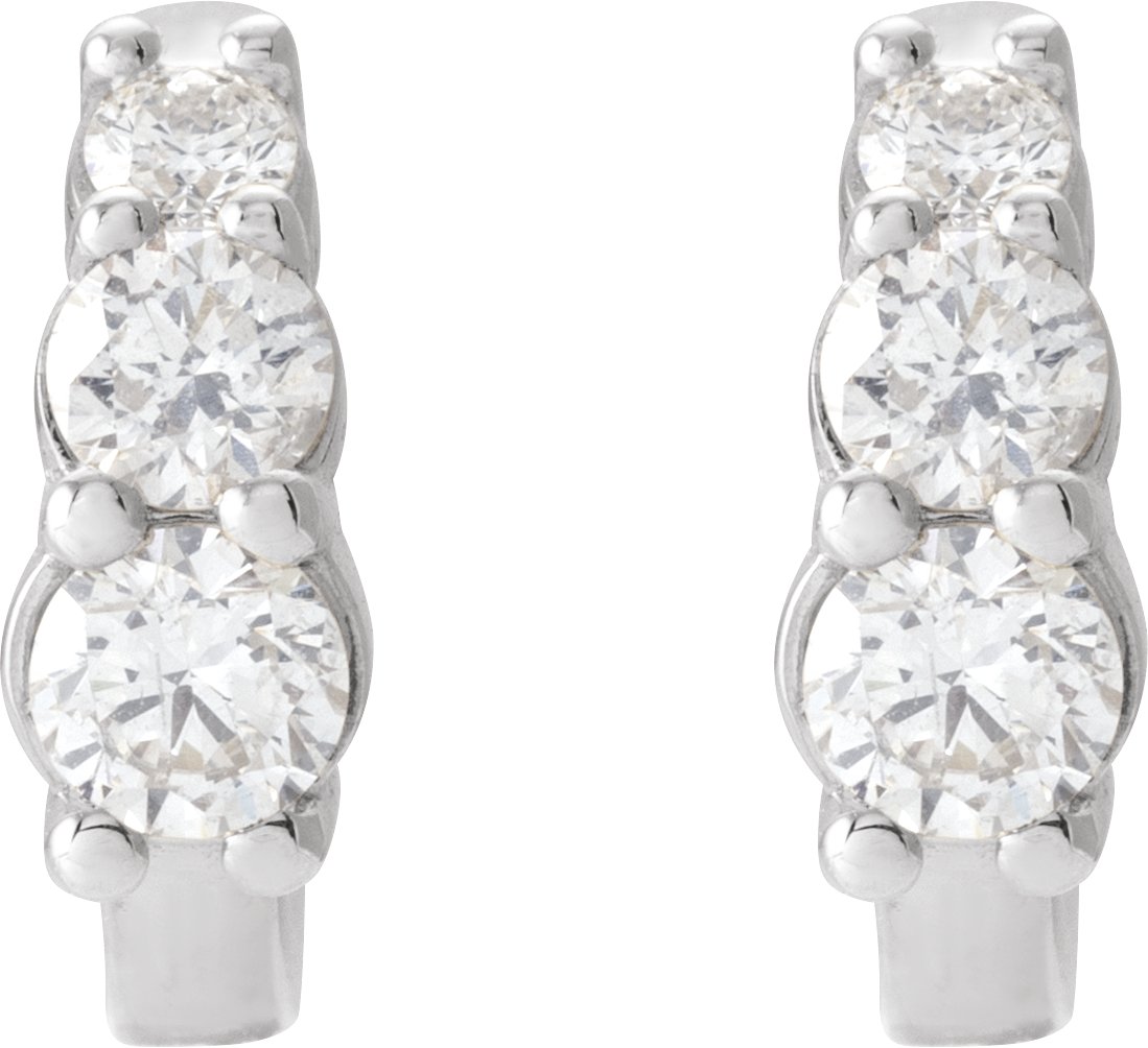 Description: 1/3 CTW Natural Diamond Graduated 3-Stone Hoop Earrings