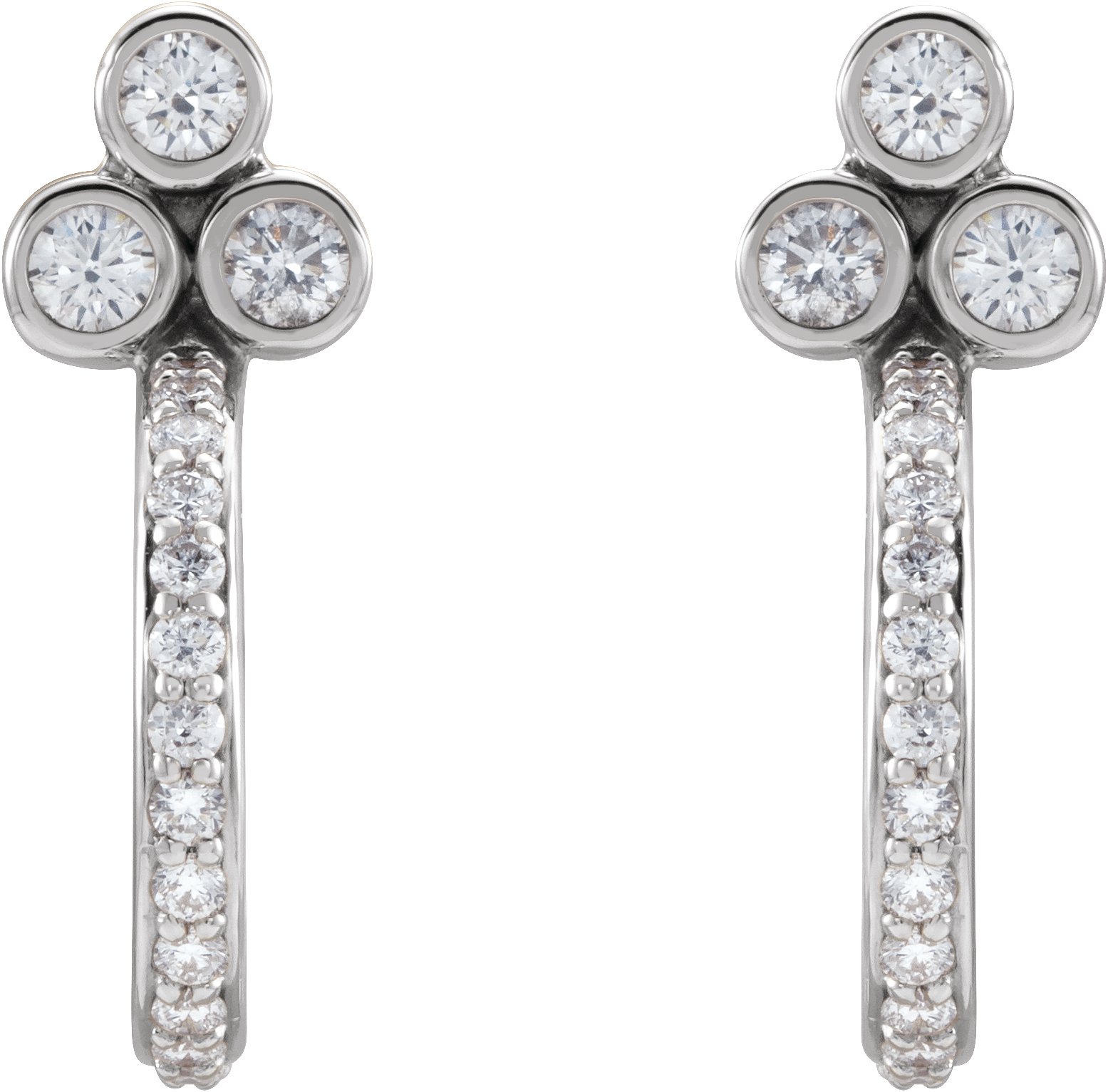 Description: 1/2 Ctw Diamond Cluster J-Hoop Earrings