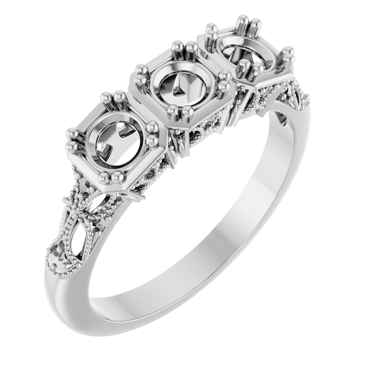 Platinum 9/10 CTW Diamond Vintage-Inspired Three-Stone Anniversary Band