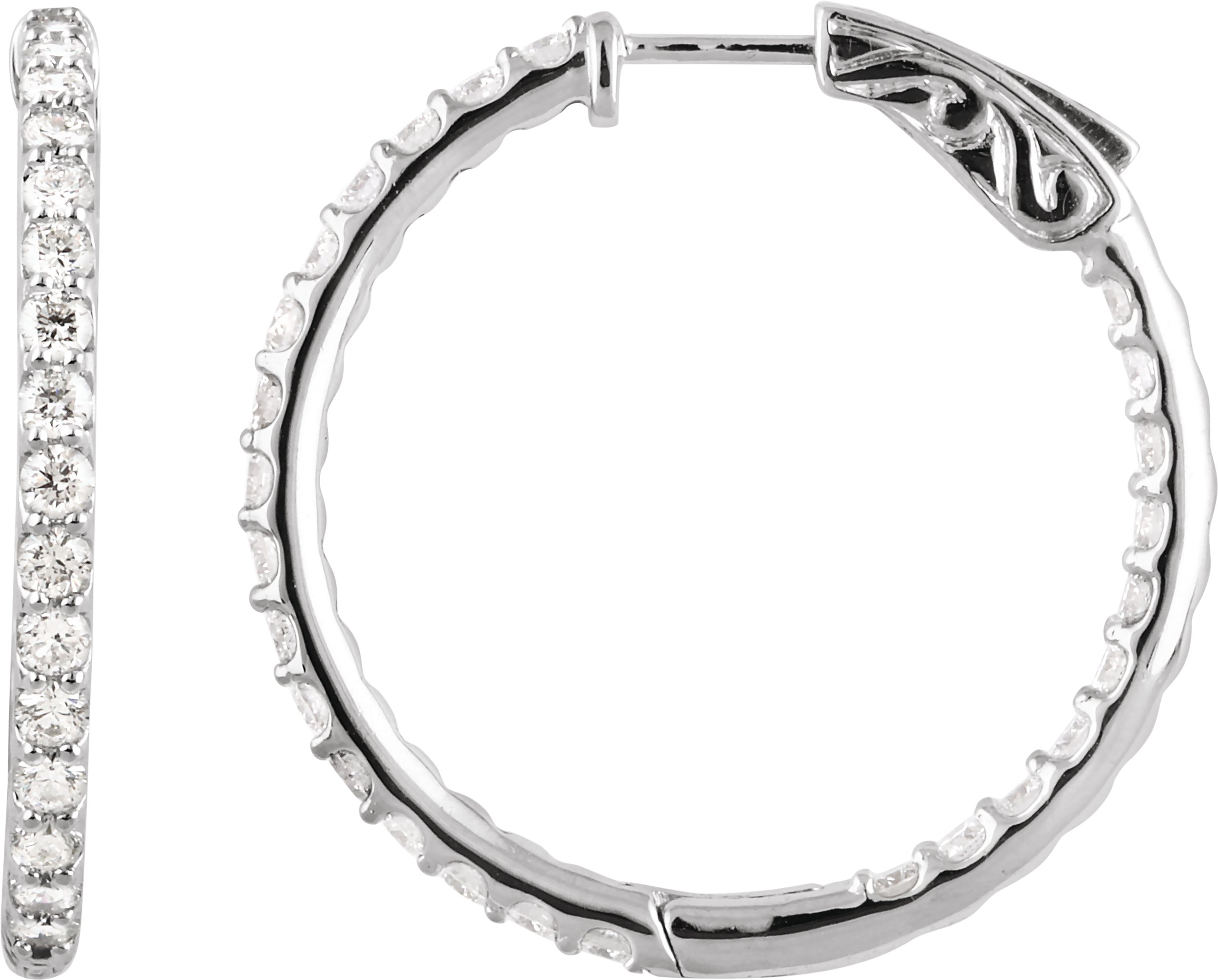 Platinum 2 CTW Diamond Inside Outside 29.5 mm Hoop Earrings