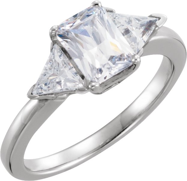 Platinum 3-Stone Semi-Set Diamond Engagement Ring | 1-8x6, 2-5x5x5, 5.21DWT10 | Matching Band 2.19DWT10. Stones sold separately.
