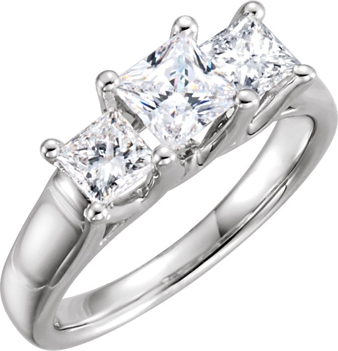 Platinum 3-Stone Princess-Cut Diamond Ring | 7/8 Carat TW. Ref 120982.