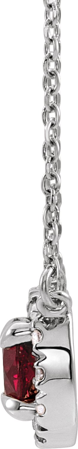 Platinum 3.5 mm Round Chatham Lab Created Ruby &.04 CTW Diamond 18 inch Necklace