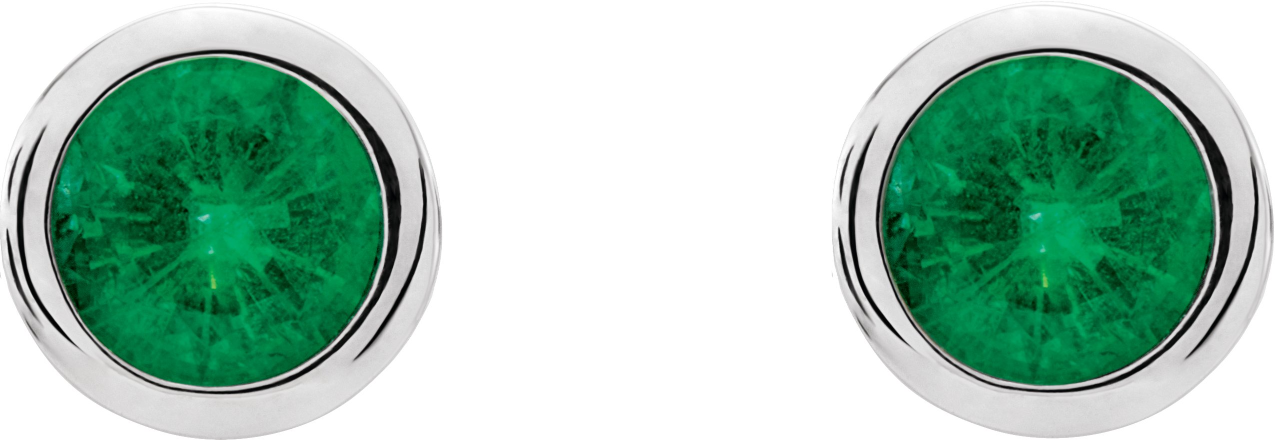 Platinum 4 mm Round Genuine Emerald Birthstone Earrings