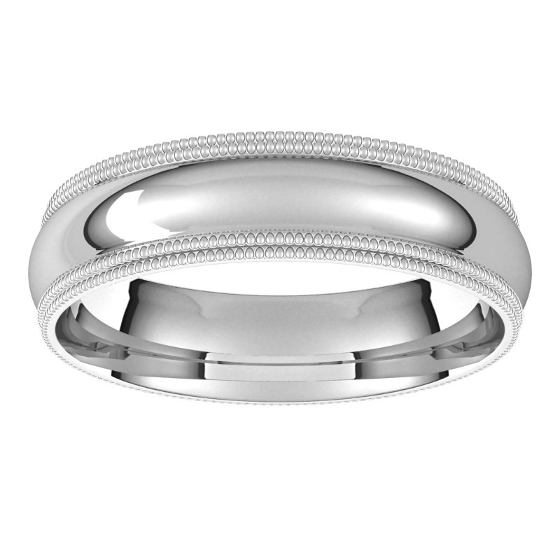 Platinum 5 mm Double Milgrain Half Round Comfort Fit Band Size 10