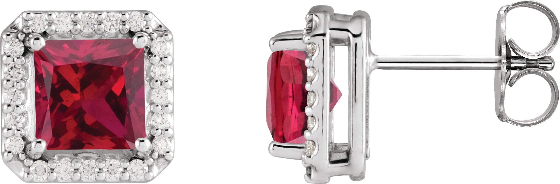 Platinum 5x5 mm Lab Grown Ruby 0.17 CTW Natural Diamond Halo Style Earrings Ref 19609045