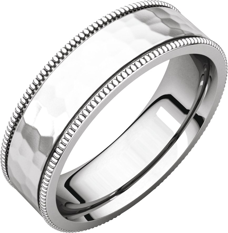 Platinum 6 mm Flat Milgrain Band with Satin and Hammer Finish Size 8.5 Ref 12983759